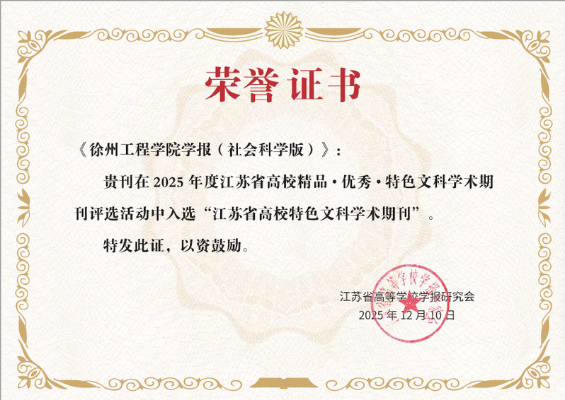 近日,江苏省高等学校学报研究会公布2025年度“精品·优秀·特色期刊”遴选结果,《徐州工程学院学报(社会科学版)》成功入选“特色期刊”。